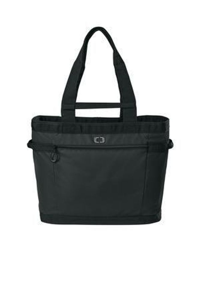 • Featuring multiple carrying options, this generous tote is perfect for heavy loads. • 400D x 400D recycled RPET ballistic polyester • Over the shoulder webbing handle • Structured grab handle • Padded side handles • Flexible and collapsible interior side pockets • Interior zippered pocket • Interior key fob • Exterior zippered pocket • Metal O icon at front • Structured bottom • Dimensions: 15"h x 18.25"w x 10"d • Capacity: 2,868 cu. in./47 L • Weight: 2.6 lbs./1.1 kg • Note: Bags not intended for use by children 12 and under.